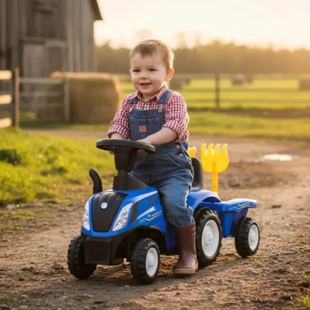 New Holland T7 tractor met aanhanger blauw